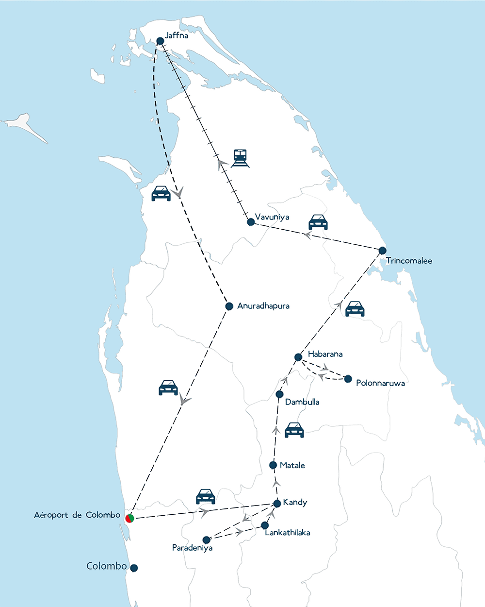 • Une découverte du cœur de l’île cinghalais mais aussi du nord tamoul (Jaffna,…), redevenu accessible au tourisme.